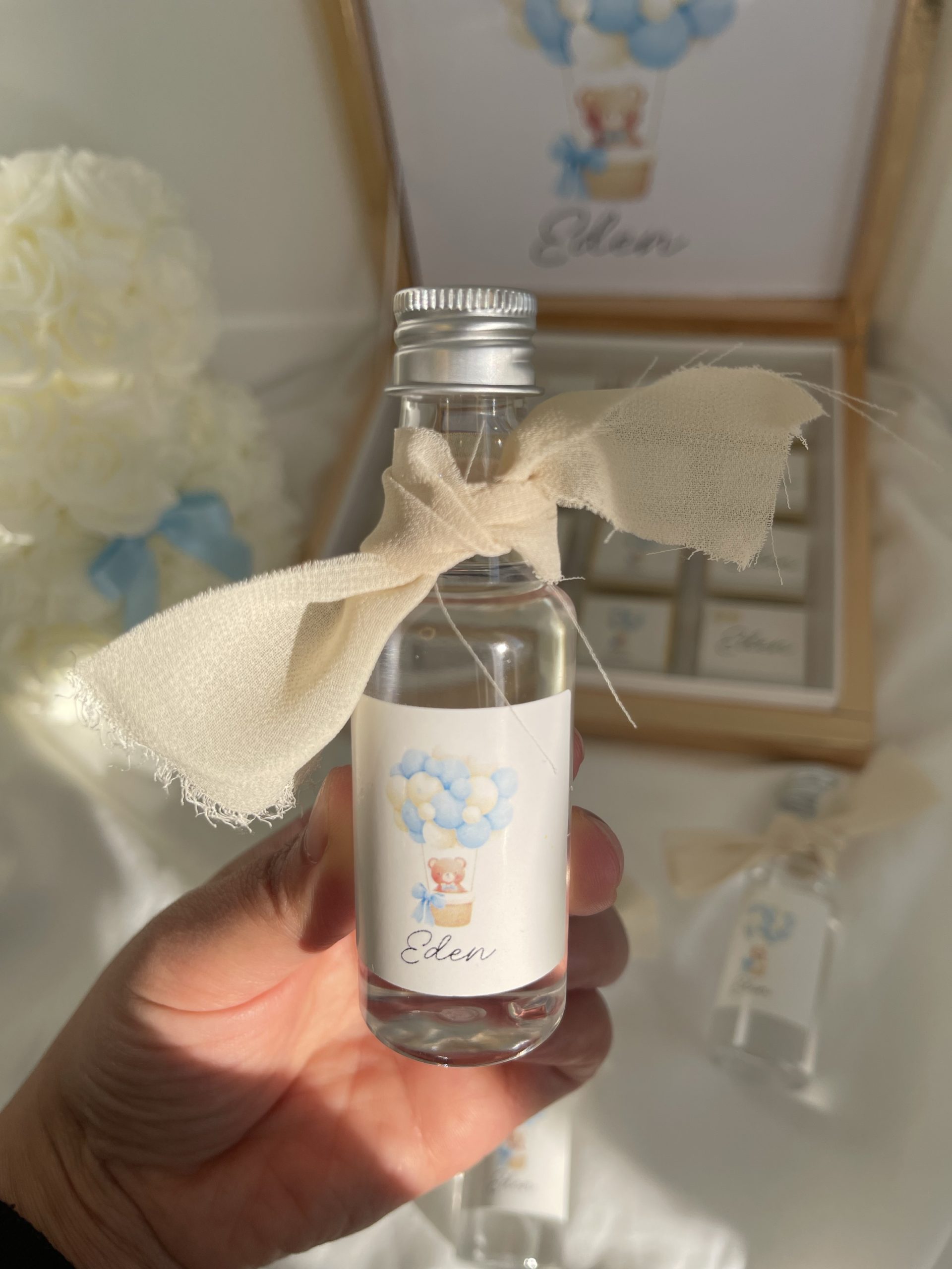 Cette fiole personnalisée de 50 ml est une attention délicate, pensée pour célébrer la naissance d’un enfant avec douceur.